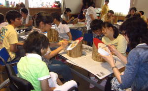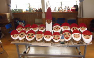 三輪先生の指導の下、宜しくお願いします ねっ、上手にできた? 自分の顔に似たよ
