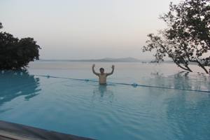 たった2日でこんなに上手に引けるようになりました 大きな湖とつながったプール。 雄大だな〜! 王様の気分、向こうの山はシギリヤロック