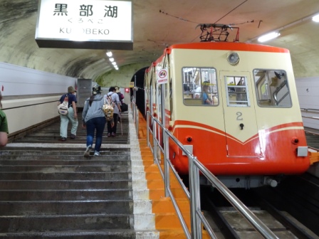 黒部ケーブルカー:菱形の登山電車 一ノ越から立山(雄山)山頂まで1時間の行程 ホテル立山で、10ヵ月振りの再会を祝う