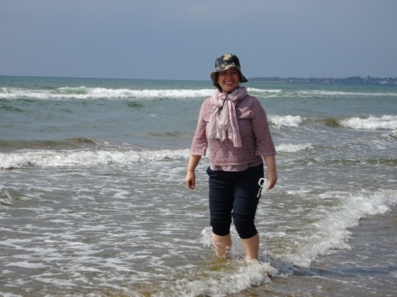 日本海で海水浴、次回は水着に挑戦 千里浜なぎさドライブウェー 昨年のネパールツアー参加者と (1)