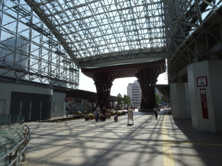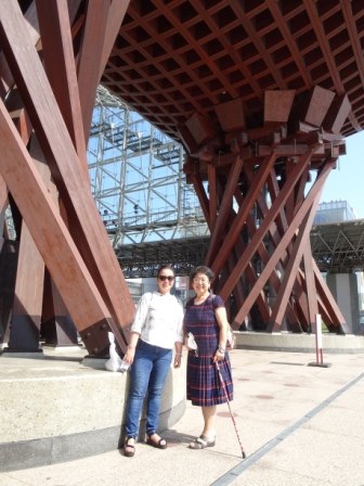 昨年のネパールツアー参加者と (2) 金沢駅の鼓門 (つづみ門) 金沢の玄関口「もてなしドーム」
