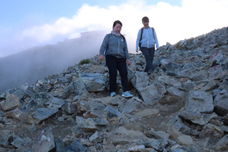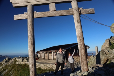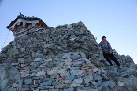 雄山の社務所と鳥居 雄山頂上は、私達の貸切!! 頂上の下りは、慎重に